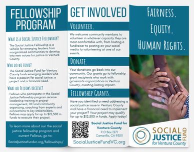 The Social Justice Fund for Ventura County needed a trifold to be able to quickly share ways to get involved, info about their fellowship program and stats.